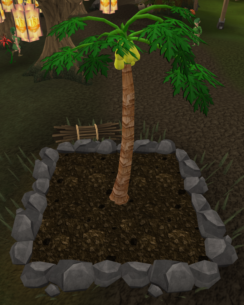 The only trees which can be grown using farming are the types of wooden trees which can be cut using the woodcutting skill, fruit trees, which produce fruit, and spirit trees, which can be used for transportation. A dragonfruit tree can be grown in a fruit tree patch from a dragonfruit sapling using the farming skill. Members can grow some fruits with the farming skill, often in a fruit tree patch.however, most berries are grown in a bush patch, and some fruits are grown in allotment patches. Level 57 farming is needed to plant a papaya tree seed in a plant pot that has been filled with dirt from any gardening patch. This option is convenient for players not on the standard spellbook. Allow your character to rake all the weeds out of the patch. There are 7 fruit tree patches: Players receive 140 farming experience for planting a dragonfruit tree and 17,335 farming experience for checking its health when it is fully grown. Your a genius, that worked!!!! This is the only method available to obtain a white tree fruit. Add compost to the patch. They heal 200 life points each and restore 16 run energy when eaten. Fruit trees edit source level seed payment harvest experience profit per xp name cost name cost name value.